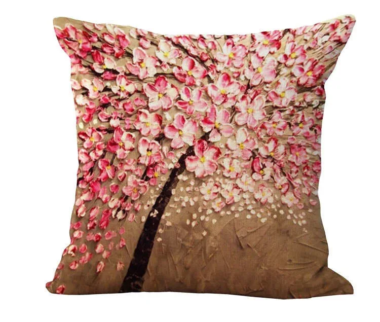 3D Oil Painting Square Pillow Covers with Various Tree Blossom Effects in Front