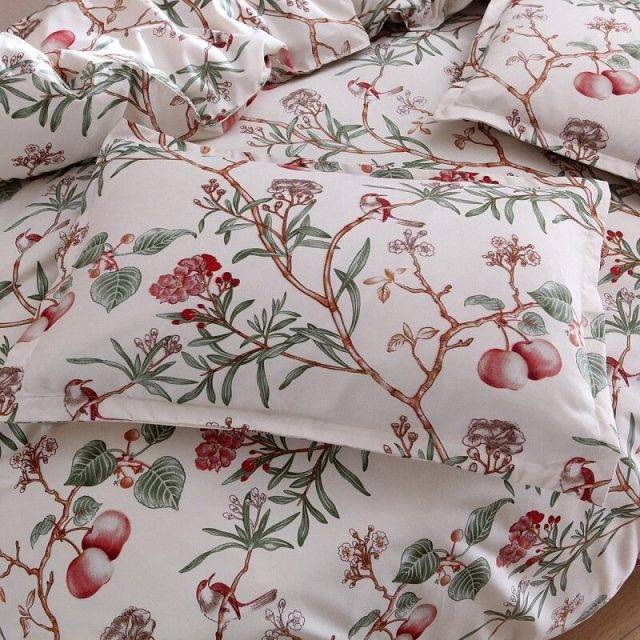 The Modern floral duvet cover is one of the best bedroom accessories you can ever have. The floral design is so attractive; it will not only make your bed look appealing, but will also give your room a soft and pleasant look. The flower duvet covers are also known as floral comforter covers or botanical duvet inserts. A full blossom duvet cover, with its subtle shades of red and green or a white background with subtle branches, adds serenity, and a calm charm to any bedroom. It’s also a fun feature that some animals are shown such as birds that are perched on branches. It is a charming and creative way to add a pop of color and a dose of natural visual interest to your bedroom. This 100% Cotton Bedding set is available for Single/Twin, Full, Queen, and King Size Beds.