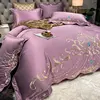 This Royal Lavandula Bedding Set features Fashion Embroidery on Egyptian Cotton with artistic beauty. The embroidery patterns are elaborately outlined with various lines, making them colorful, vivid, and three-dimensional. This craftsmanship results in a look that is far more exquisite, elegant, and refined than ordinary bedding.